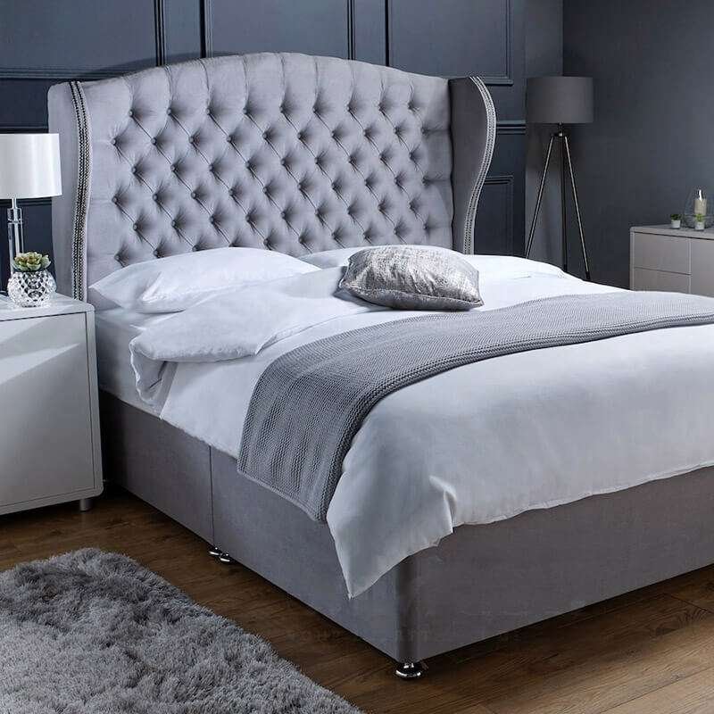 Griffin Luxury Divan Ottoman Bed – Elegant Straight Wingback Headboard with Optional Ottoman Storage